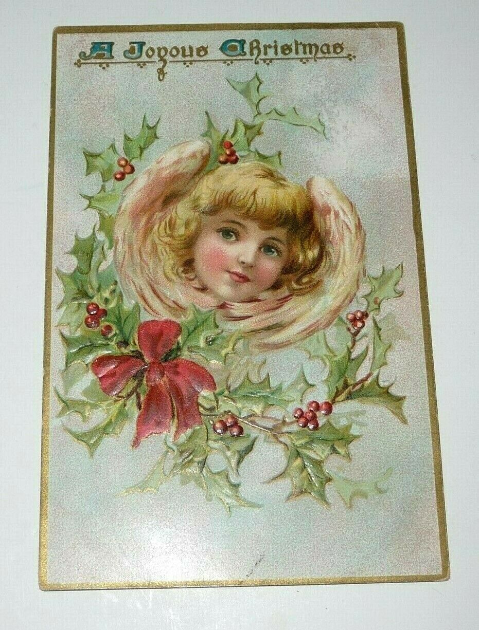 Title (ebay affiliate link): 1908 Antique Raphael Tuck Christmas Postcard Embossed Angel, Holly, Ribbons