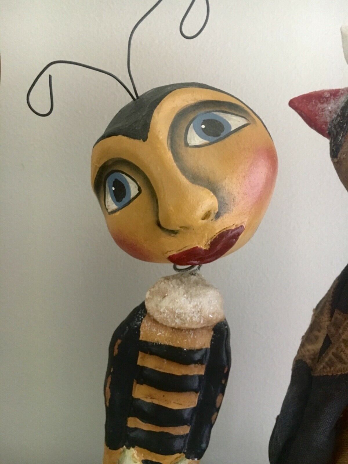 Title (ebay affiliate link): OOAK Primitive Paper Mache Bee Bobble Head Stand Alone by Folkgirl -erikas