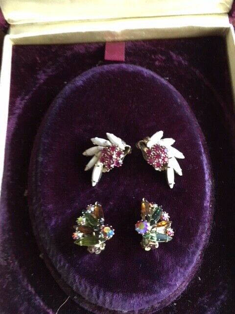 Title (ebay affiliate link): Signed Weiss Cluster Rhinestone and milk glass winged earrings