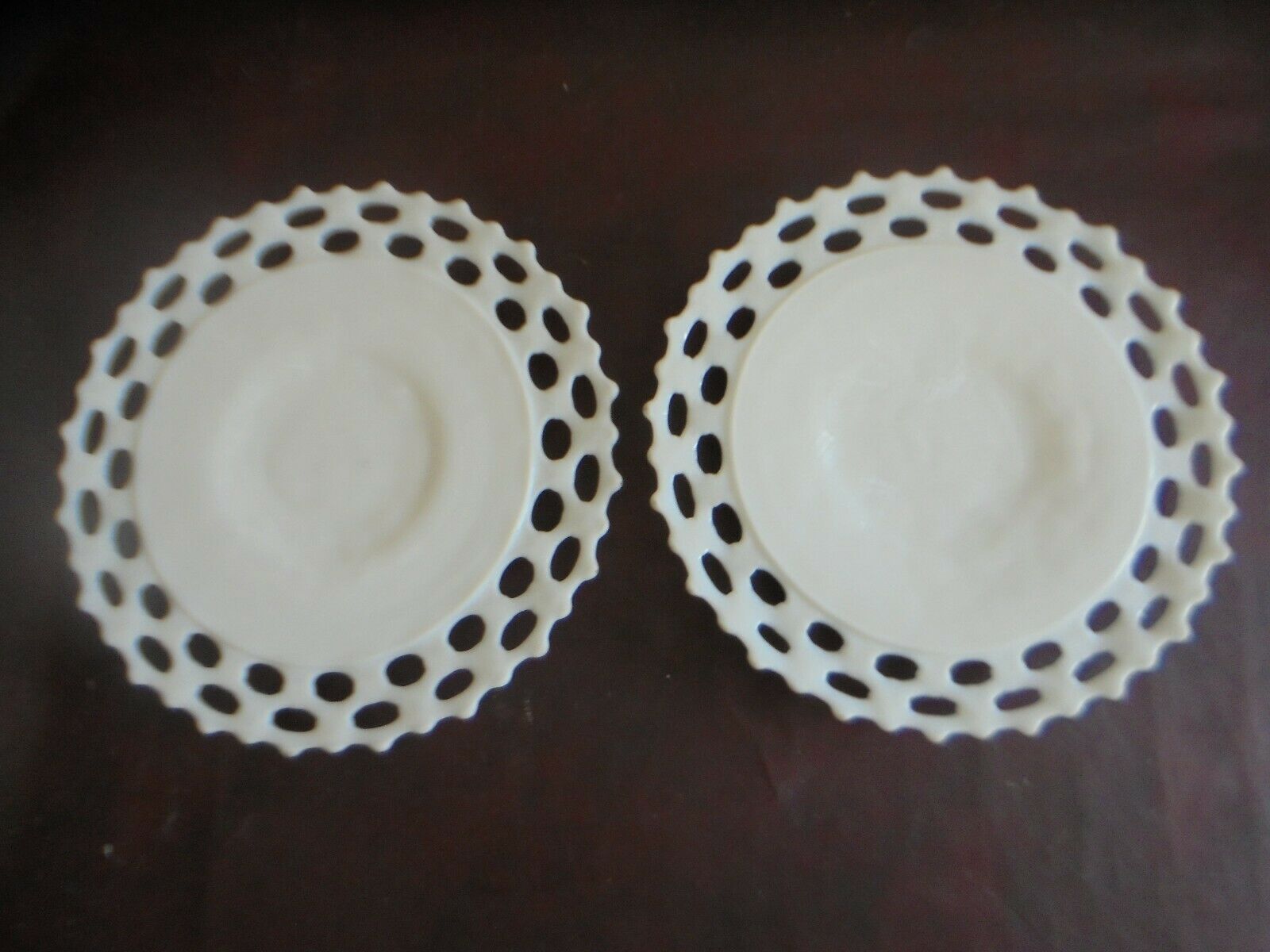 Set of 2 White Milk Glass Large 11" Plates Doric Open Lace Very Good Cond