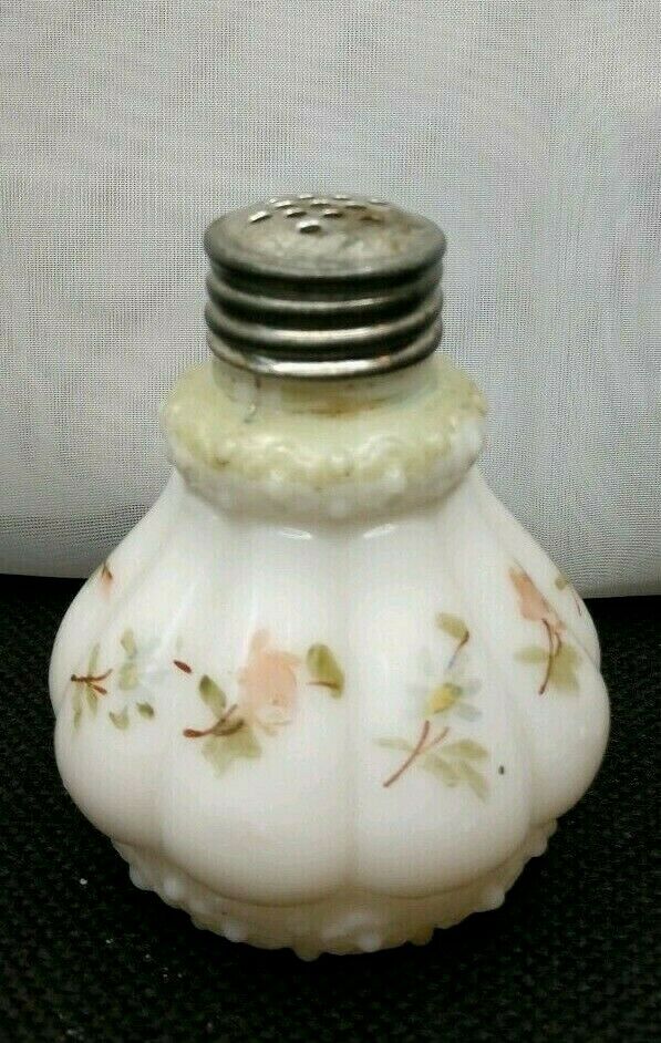 Title (ebay affiliate link): Antique White Milk Glass Pink Floral Paneled Pepper Shaker