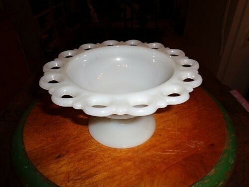 Title (ebay affiliate link): Vintage White Milk Glass Lace Edged Footed Candy / BonBon / Trinket Dish