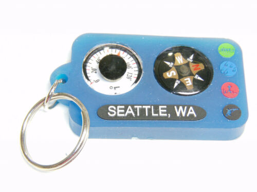 VINTAGE SEATTLE WASHINGTON, TEMPERATURE & COMPASS GAUGES, KEY CHAIN