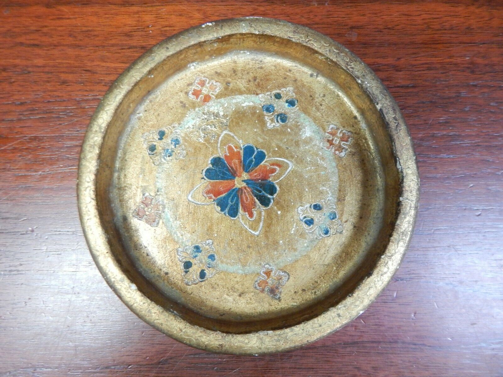 VINTAGE FLORENTIA HAND MADE IN ITALY GOLD ROUND TRAY