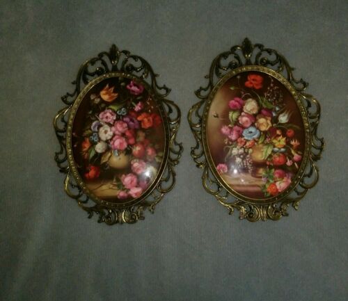 Title (ebay affiliate link): 2 Vintage Floral Vase Picture Oval Metal With Bubble Convex Glass Italy Frame