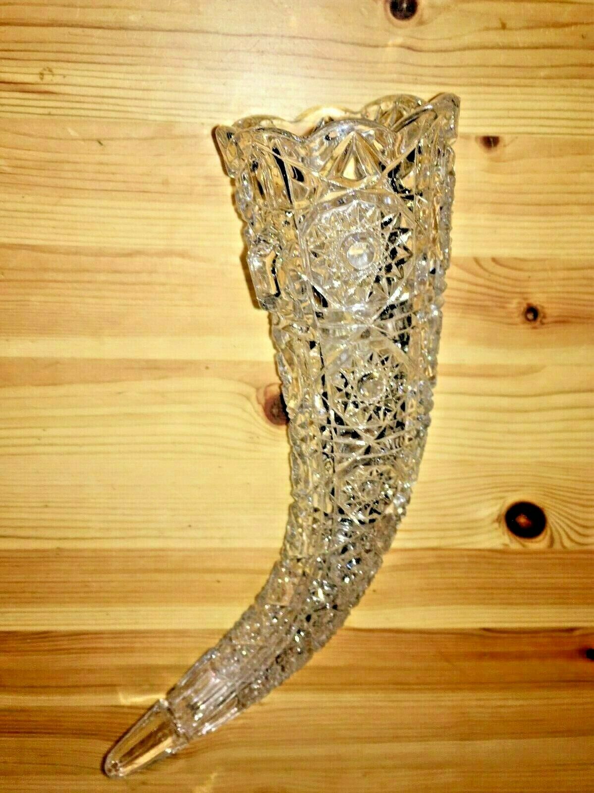 Title (ebay affiliate link): Rare Antique Clear Cut Glass Horn Cornucopia Style Vase Torpedo Bottom