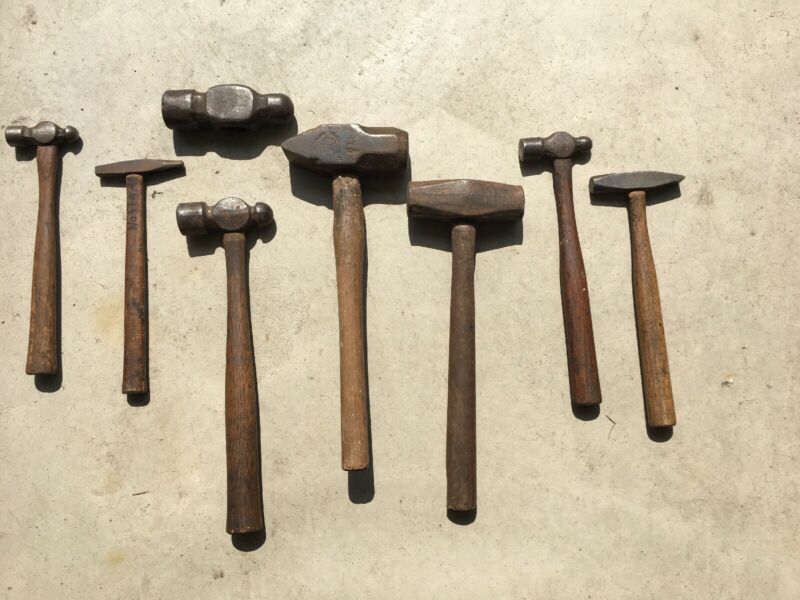 Title (ebay affiliate link): Lot of 8 Vintage Blacksmith Hammers-Cross Pein, Ball Pein