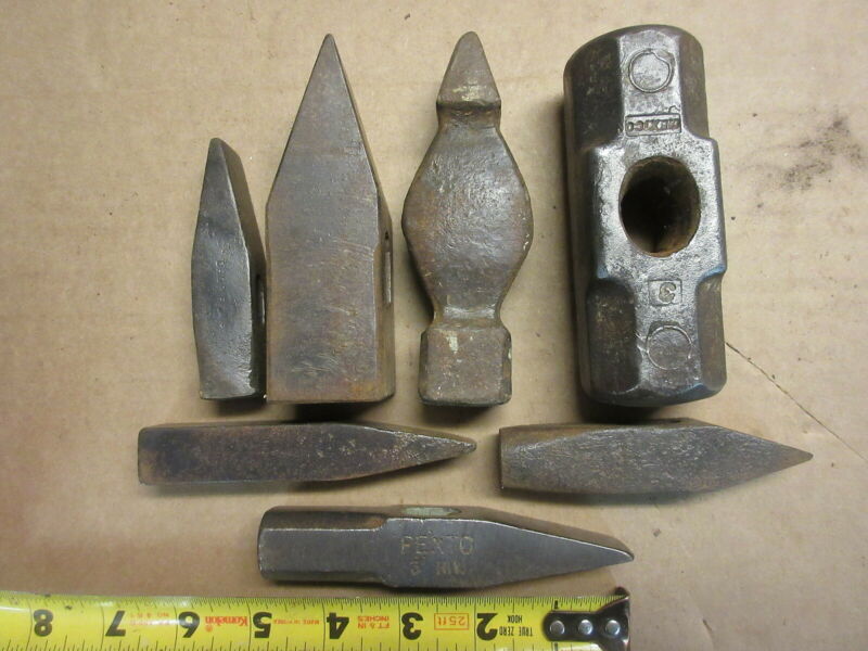 Title (ebay affiliate link): 7 vintage hammer heads 6 cross peen, 1 3Lb. sledge old blacksmith tools