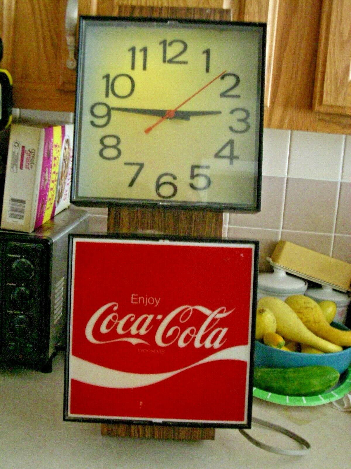 Vintage Coca-Cola Wall Clock & LIGHT 70''s MODEL G017 Works!