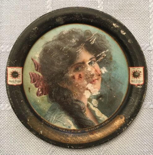 Title (ebay affiliate link): Ca. 1907 SMITH-WALLACE SHOE CO. Chicago Advertising TIP Tray Victorian Woman