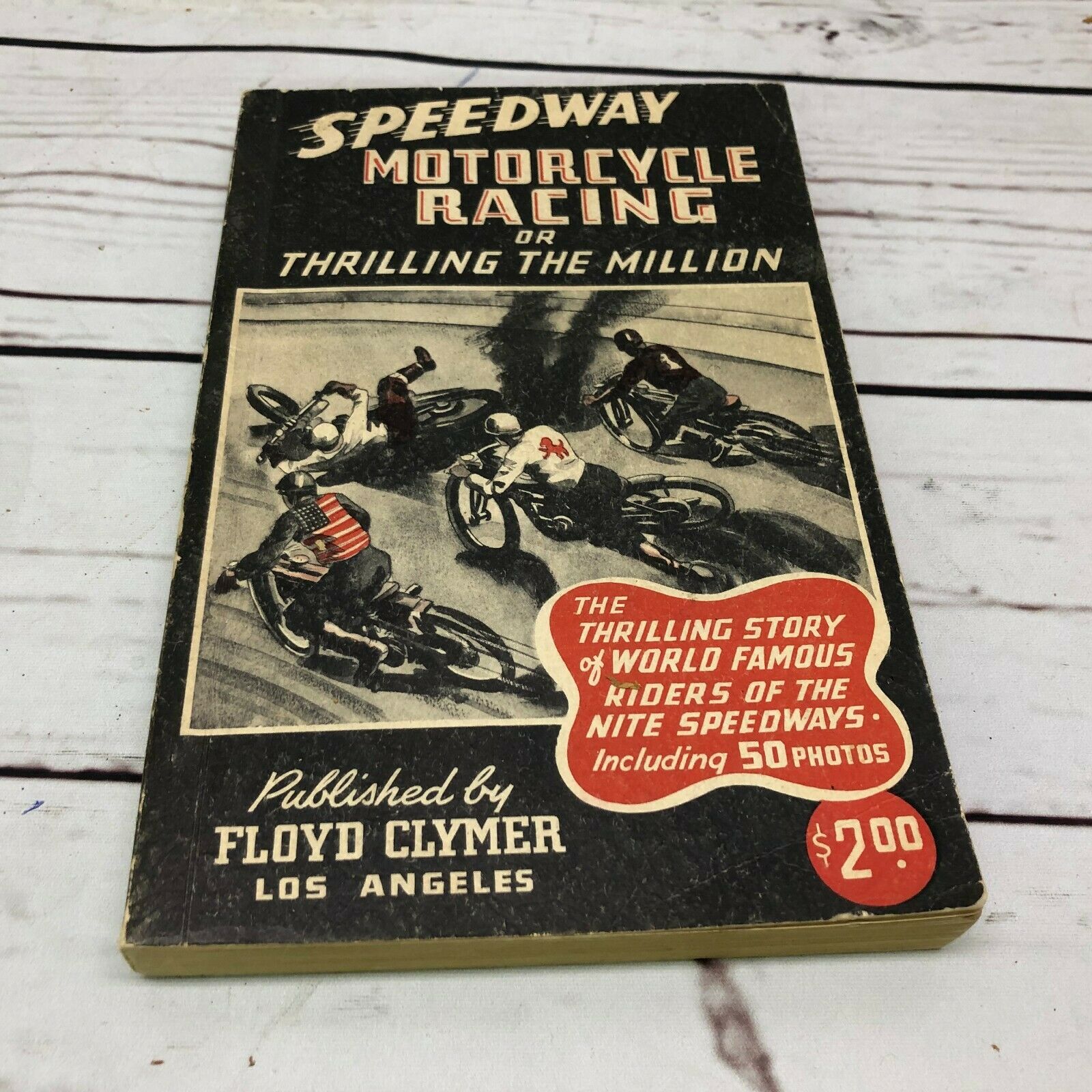 Title (ebay affiliate link): Speedway Motorcycle Racing or Thrilling the Million Floyd Clymer 1947
