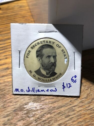 Title (ebay affiliate link): M. O. Williamson For Secretary Of State Pin Back Button