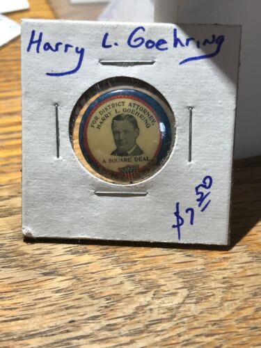Title (ebay affiliate link): Harry L. Goehring For District Attorney Pin Back Button