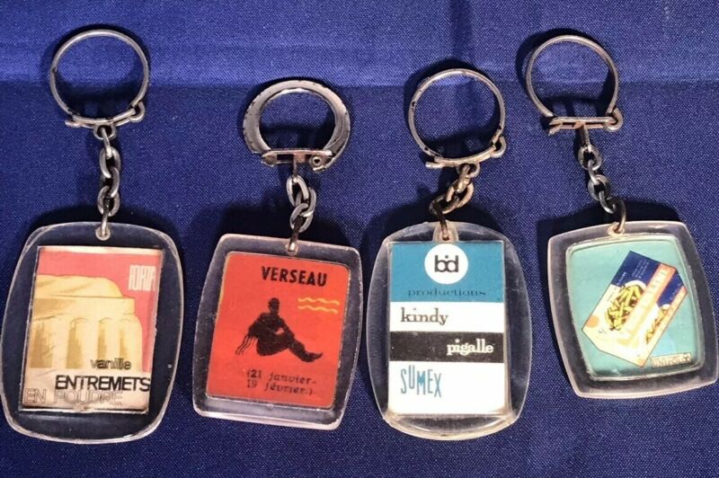 Vintage French Advertising Key Chains Set Of 4