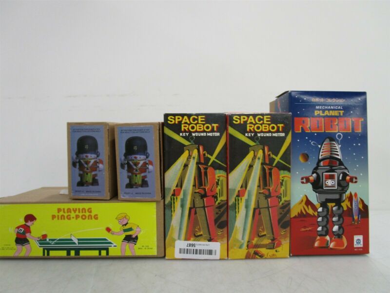 Title (ebay affiliate link): Lot 6 Tin Lithograph Toy Windup Space Robot Paddleball Table Drummer