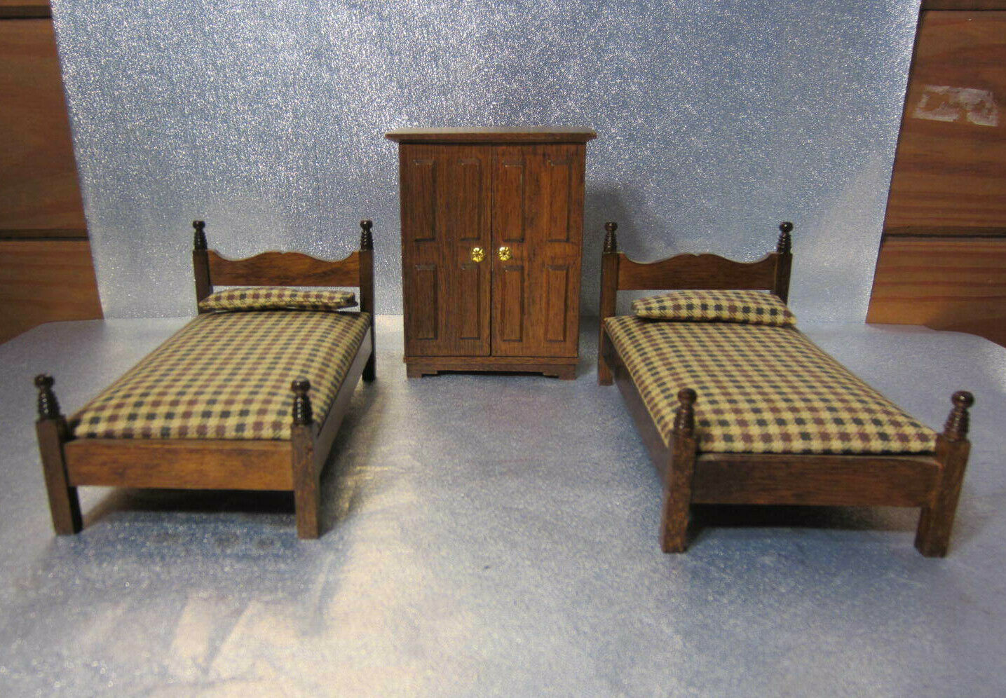 Title (ebay affiliate link): Vintage House of Miniatures Dollhouse Furniture X-Acto Wood 2 Beds & Armoire