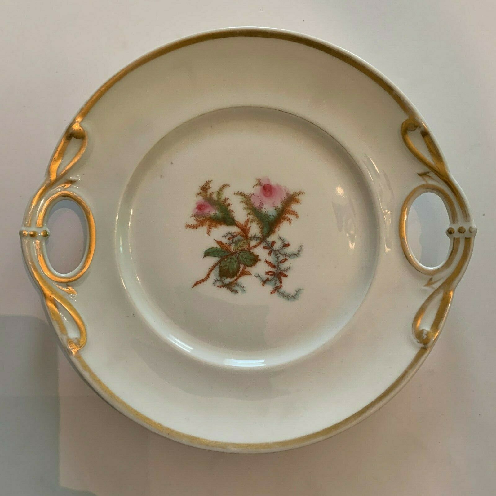 Antique Old Paris Moss Rose Porcelain Serving Plate With Open Handles