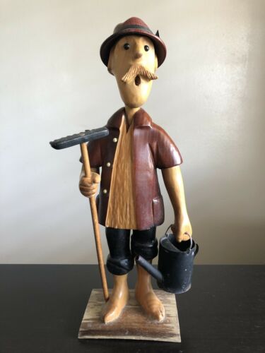 Title (ebay affiliate link): Vintage Italian Carved Multi-Toned Wooden GARDNER Sculpture Rake Watering Can