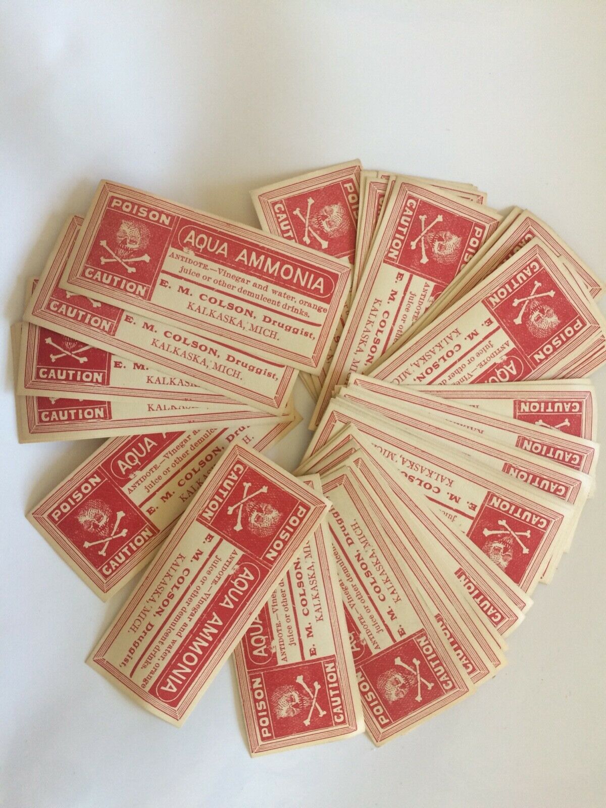 Title (ebay affiliate link): 40+ Vintage Drug Store Apothecary Medicine POISON LABELS-all same early 1900''s