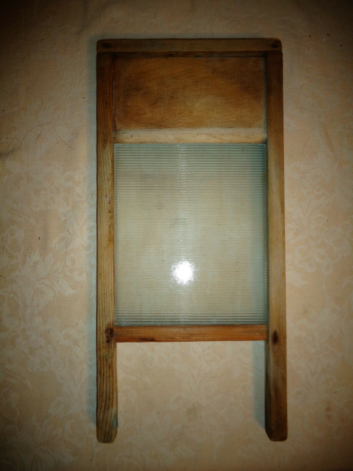 Title (ebay affiliate link): Vintage Washboard Old Fashioned Glass Wood Antique Small size