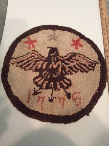 Title (ebay affiliate link): Primitive Vintage Floral Hooked Rug Chair Pad Seat Eagle Farmhouse Country