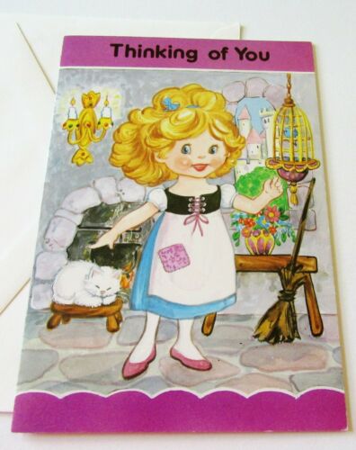 Unused Vtg Greeting Card Cinderella Type Paper Doll Card w White Kitten