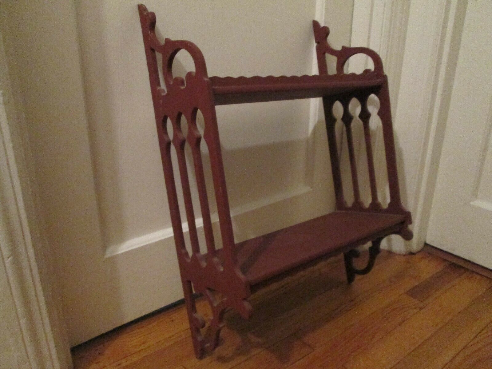 Old Vintage Scrolled Fretwork Cut Outs Antique Wood 2 Tier Hanging Wall Shelf