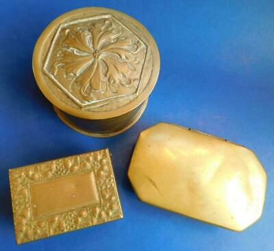 3 early Victorian Georgian Brass Boxes Vanity Snuff etc 1800s