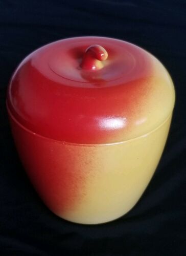 VINTAGE HAZEL ATLAS 50s MILK GLASS JAR RED YELLOW APPLE SUGAR BOWL JELLY JAM