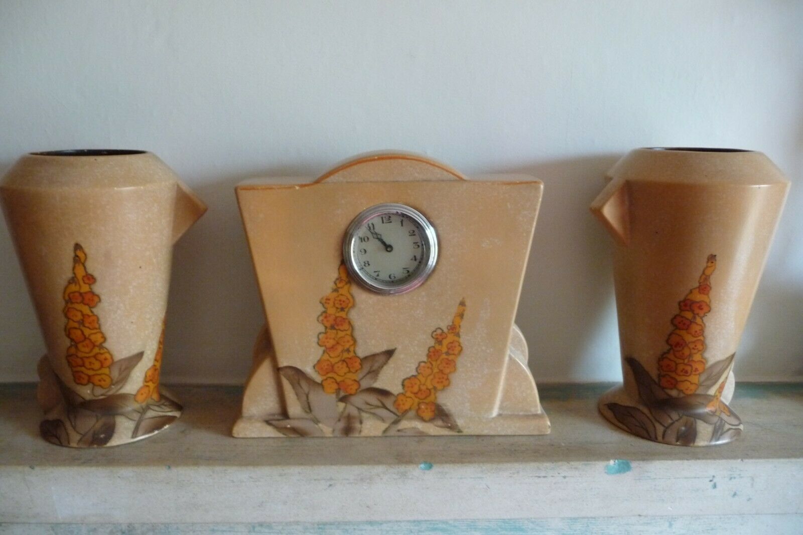 Title (ebay affiliate link): 1940''s/50''s Three piece mantle clock and vases vintage