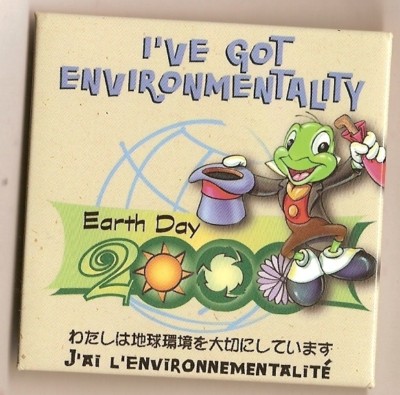 Title (ebay affiliate link): Disney CAST Button Pin Earth Day '00 Jiminy Environment