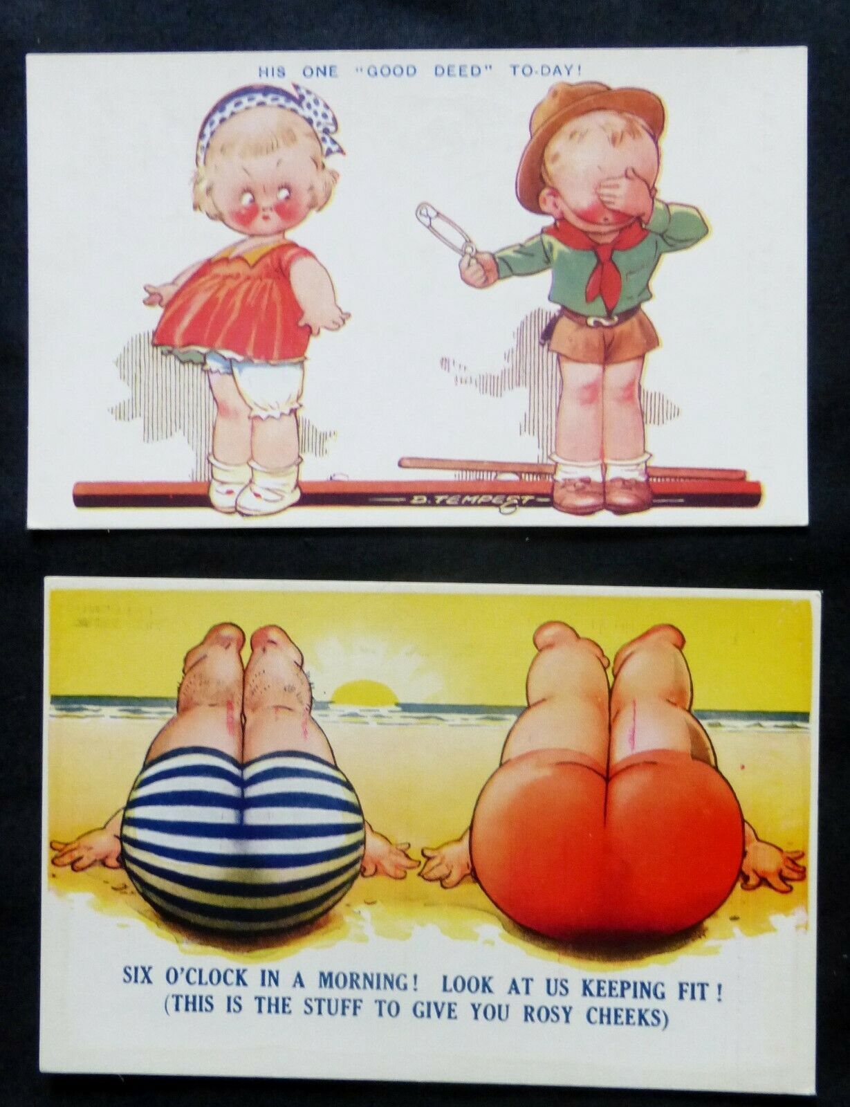 Title (ebay affiliate link): 2 BAMFORTH COMIC Uncirculated Post Cards "Good Deed" Scout & "Rosy Cheeks"#5864