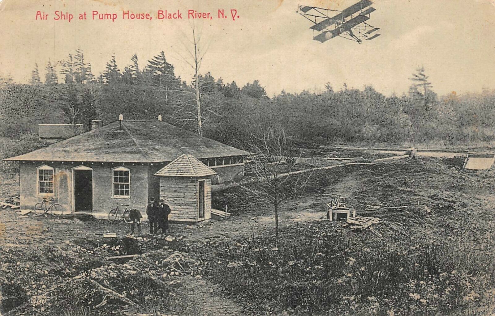 Title (ebay affiliate link): Black River, NY-1917 Airship Hovers Over Pump House-Postcard View
