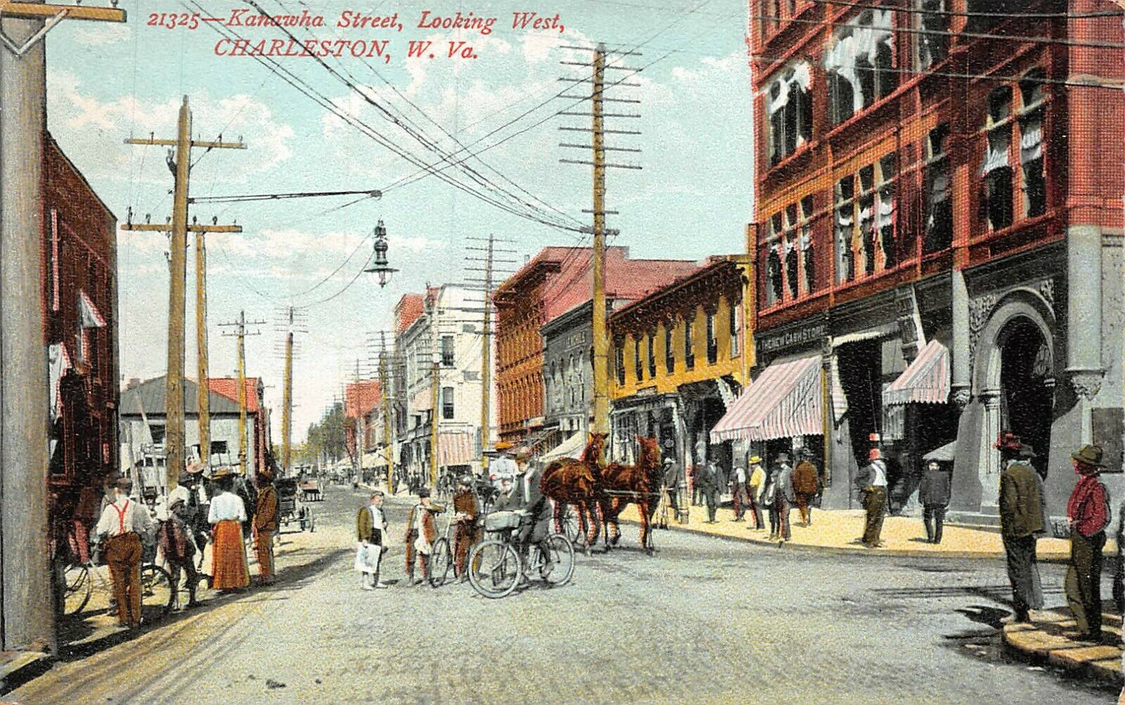 Charlestown, WV-Postcard View of Buildings-Horse & Buggy on Kahawha Street