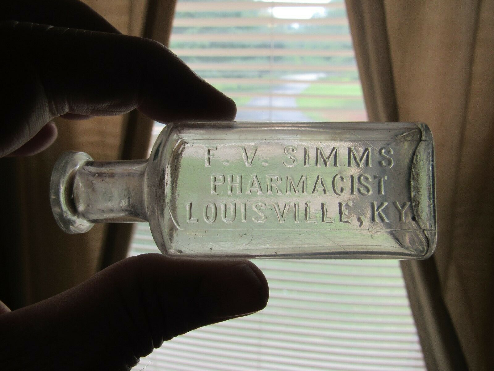 Title (ebay affiliate link): F.V. Simms / Pharmacist / Louisville, Ky. -- Cork Top Medicine Bottle