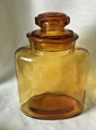 Title (ebay affiliate link): Antique Vintage Amber Brown Glass Grounded Mouth & Lid Apothecary Jar