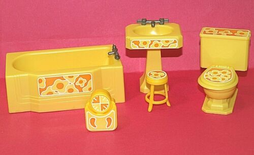 Title (ebay affiliate link): Vintage Doll House Bathroom Furniture Bathtub Sink Toilet, Scale, Stool, EXC