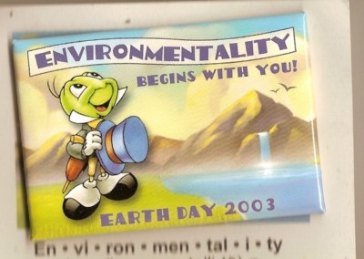 Title (ebay affiliate link): Disney CAST Button Pin Earth Day '03 Jiminy Environment