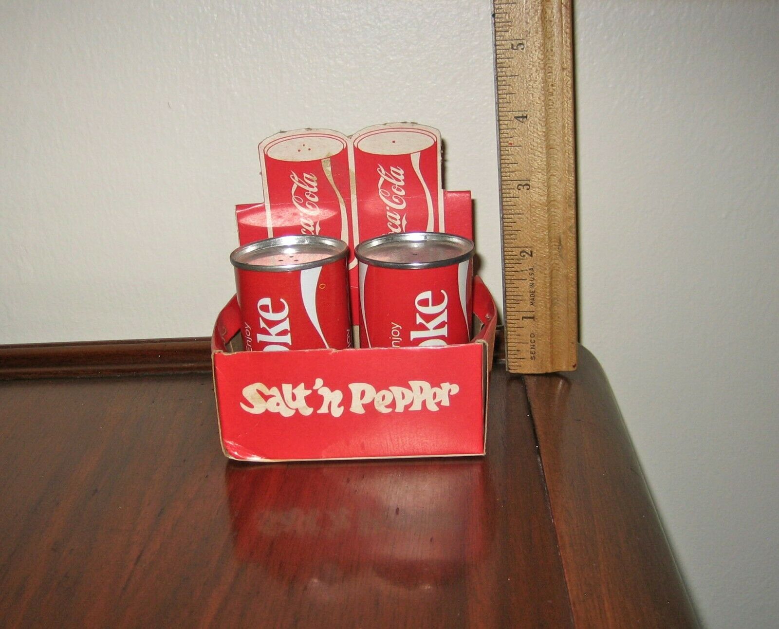 Title (ebay affiliate link): Vintage Tin Coca-Cola Can Salt & Pepper Shakers + Cardboard Display Box