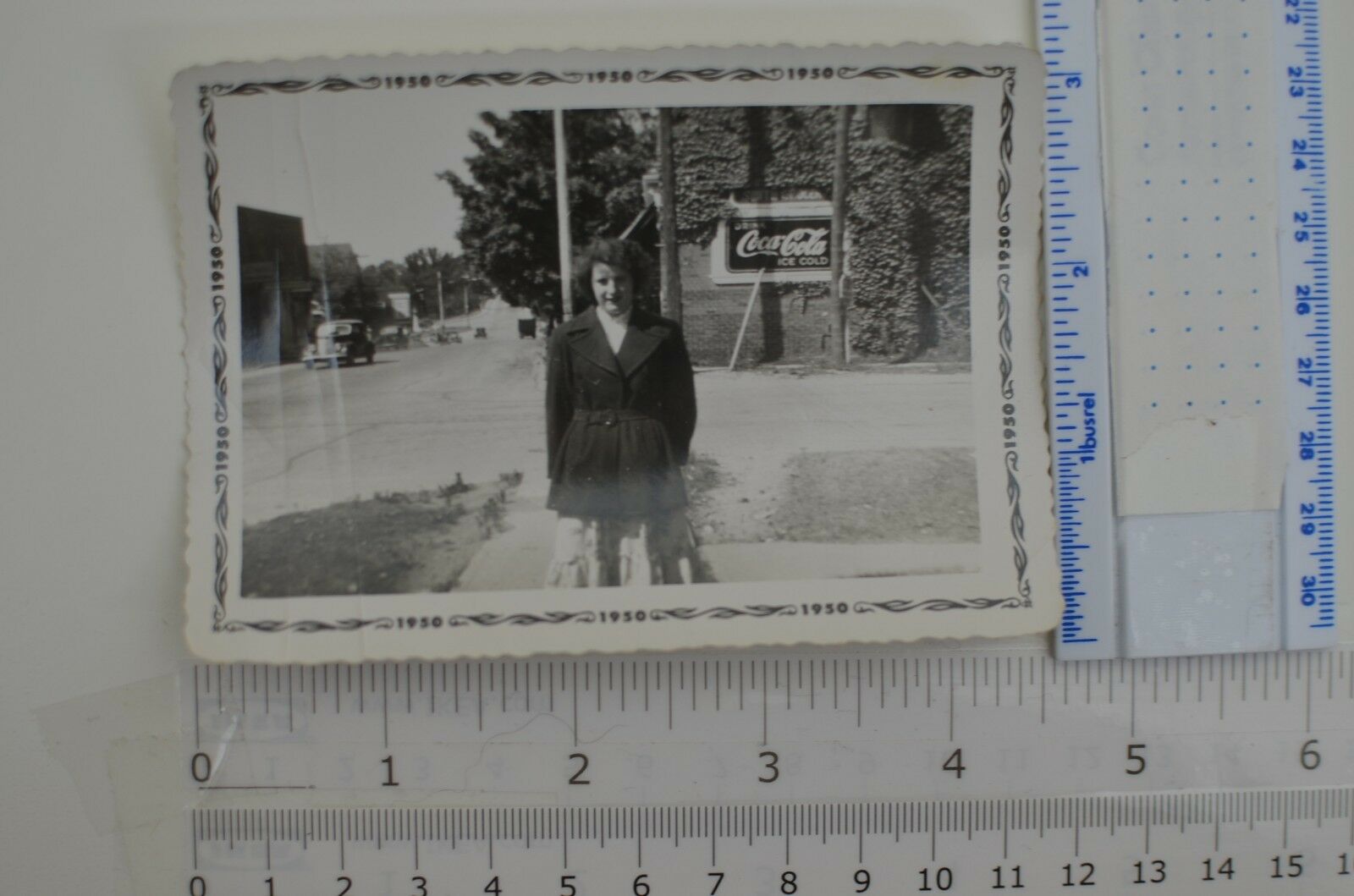 Title (ebay affiliate link): Vintage Photo 1950s Young Woman Street Canada Ontario Car Coca Cola Ad Named Z0