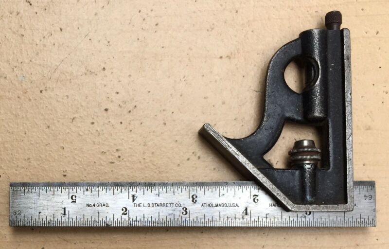 L.S. STARRETT Co. No. 33H Junior Combination Square w/ 6 In. Steel Rule
