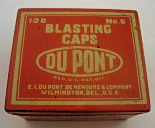 Title (ebay affiliate link): VINTAGE DUPONT MINING BLASTING CAPS ADVERTISING EMPTY TIN BOX CAN ~ GREAT SHAPE
