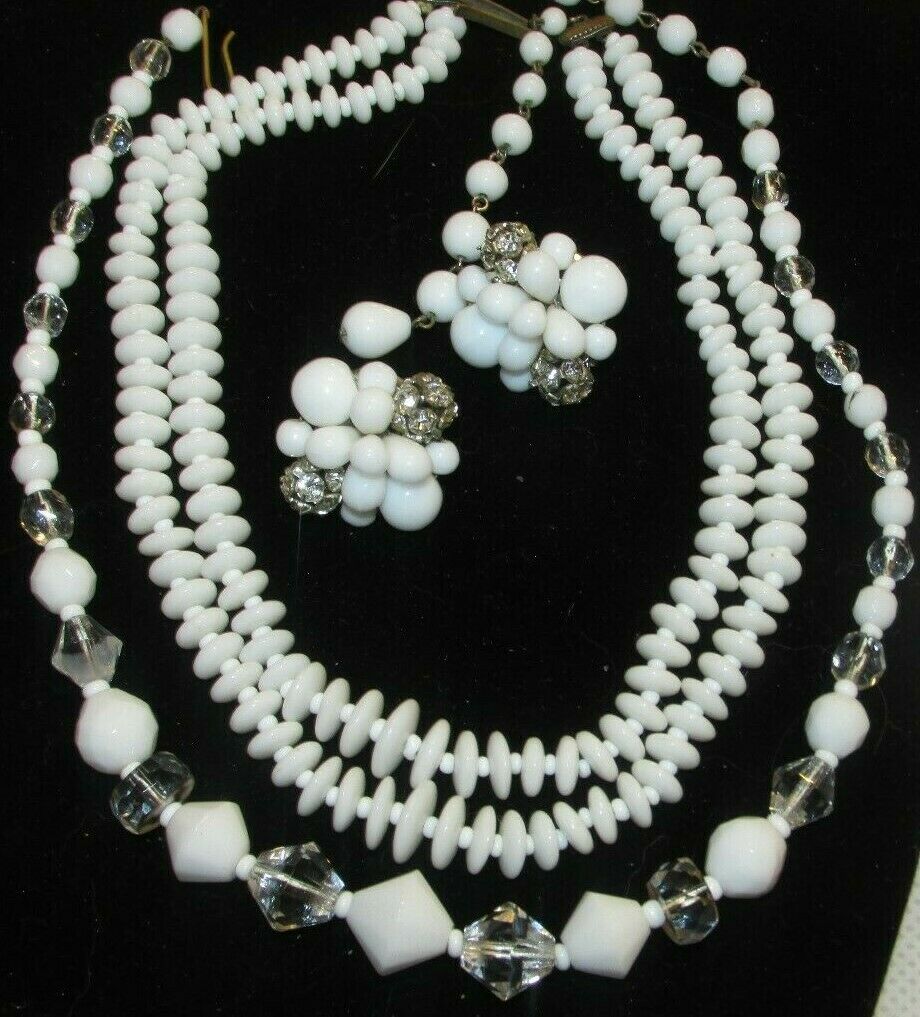 Title (ebay affiliate link): Vintage Sign WESTERN GERMANY White MILK GLASS Disc Choker Necklace Earrings LOT