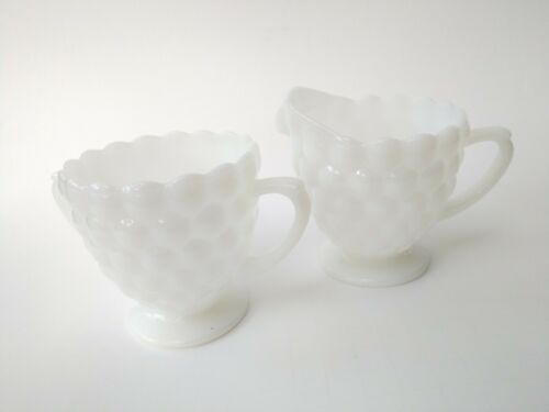 Vintage bubble milk glass cream and sugar set