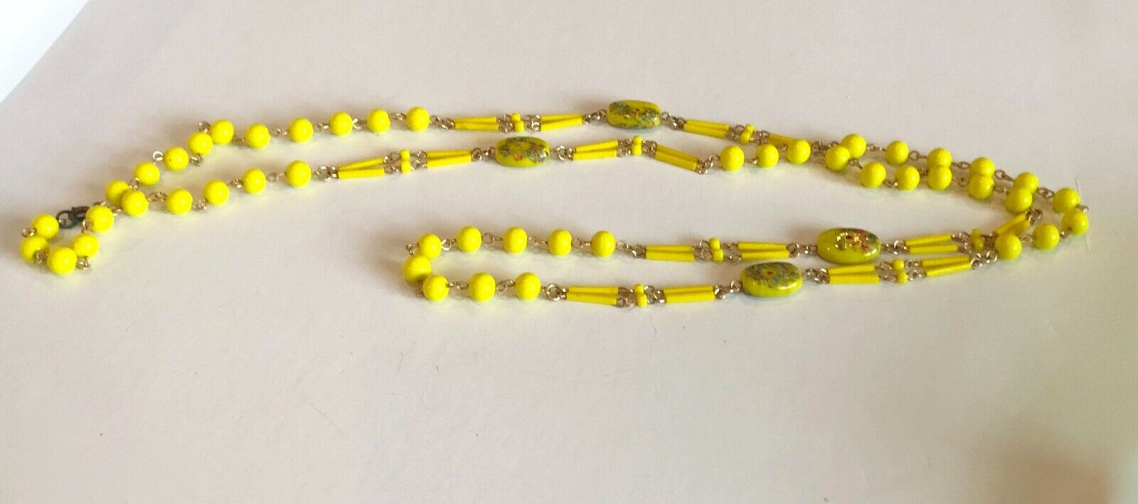 Title (ebay affiliate link): Vintage Milk Glass Beaded Necklace Yellow Hand Painted Murano Beads
