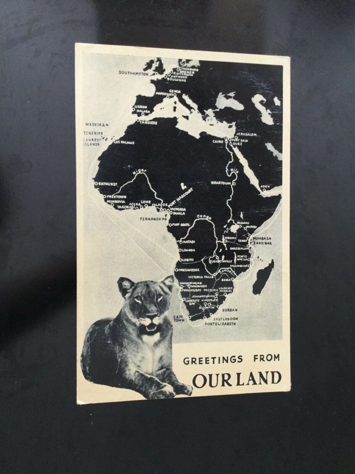 Title (ebay affiliate link): Vintage black map postcard Greeting from Our Land. Africa, lion. Publ Newman.