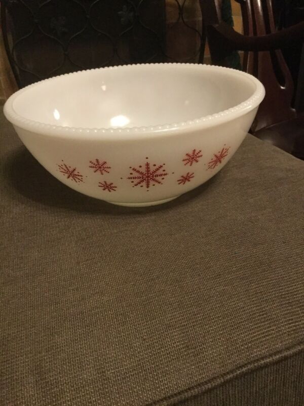 Vintage McKee Milk Glass Large Bowl, Red Snowflake