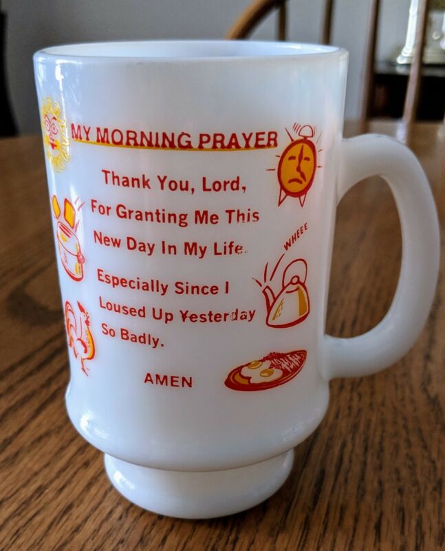 My Morning Prayer Vintage White Milk Glass Pedestal Mug