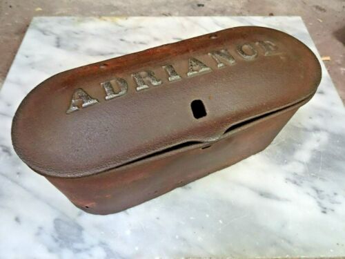 Rare Antique ADRIANCE FARM TRACTOR TOOL BOX Cast Iron Lid Wood Bottom Metal Side