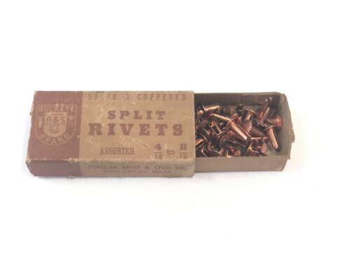 Title (ebay affiliate link): 51 Vintage Coppered Split Rivets Box Buckeye Tubular Rivet & Stud Co Copper USA